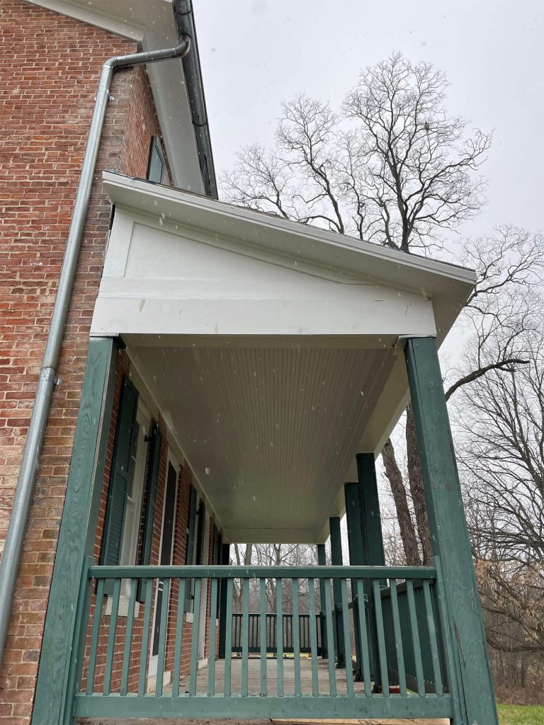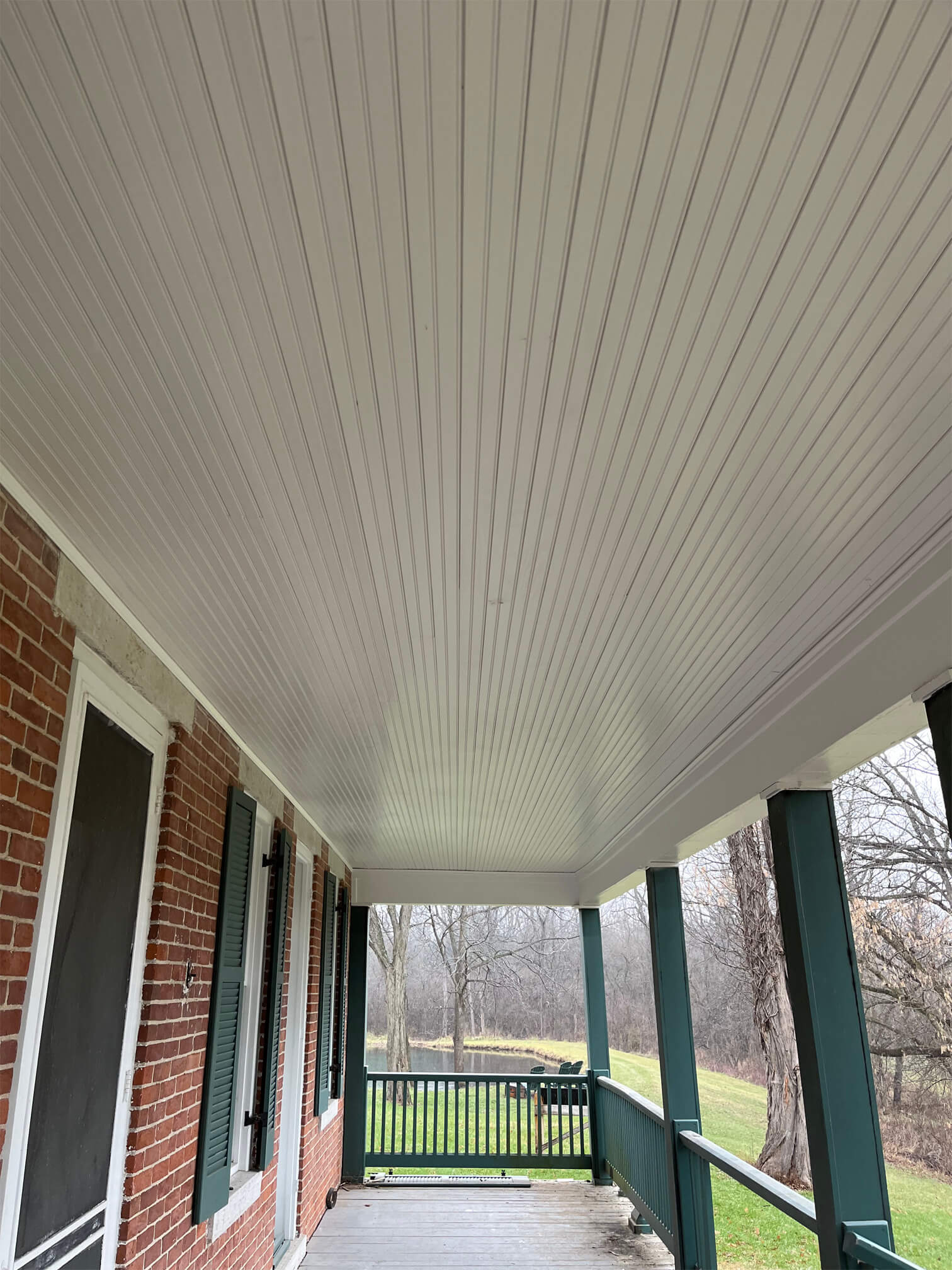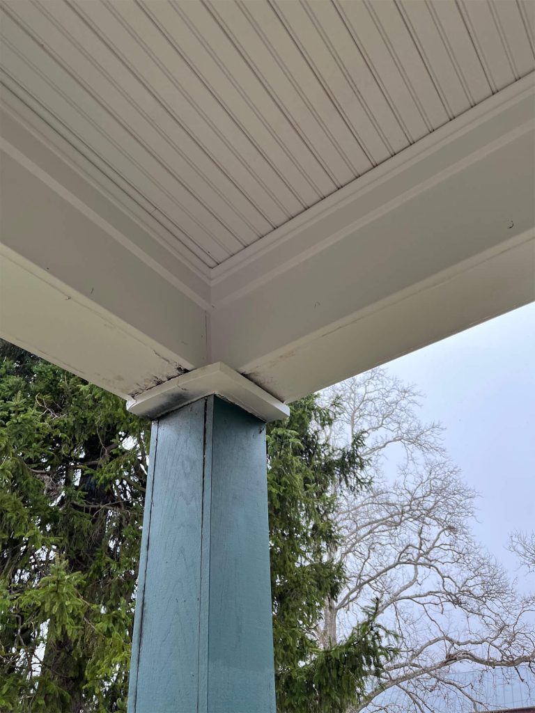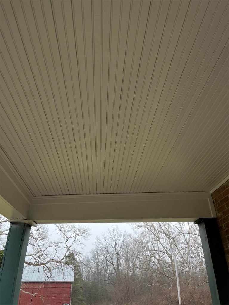 We were called out to this home to replace this porch ceiling as well as the roof. We put new shingles on the porch; matching the shingles on the rest of the house as close as possible. We installed a new wood slate ceiling that was painted white. The owner was happy with the end result.